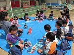 4.5歳児のお弁当がはじまりました。お天気がいいので外でパクパク。久しぶりにお弁当を作るお母さんも大はりきり。やっぱりお母さんのお弁当は最高!