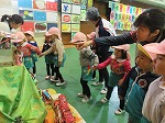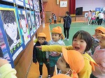 「あっ!僕の絵あった」「みてみて!これお店屋さんしたなー」「○○ちゃんの見つけた!」自分の作品やお友達の作品を見つけて指さして喜んでいました。