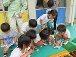 「そーと静かにきてみて!」「シーっ!シーっ!」「みてみて。ちょうちょになったよ」小声で話し、音をたてないように拍手して喜びました。(子どもたちから自然と出てきた行動でした)さなぎから出てきたところで羽を乾かしているところ…