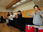 2月16日 PTAペープサープサークル、音楽サークルのお母さんたちが子どもたちにお楽しみをしてくださいました。音楽サークルのお母さんたちは♪勇気100%の合奏と、♪ミッキーマウスマーチのハンドベル演奏を聴かせてくださいました。