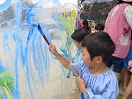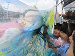 みんなで透明のビニールに絵を描きました。「先生の顔塗りつぶそう!」「きゃー」