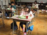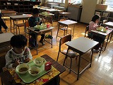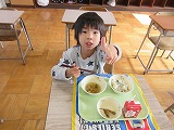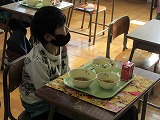 給食体験にいきました♪ 来年、就学を迎えるゆり組さんが田辺東小学校で給食体験をさせてもらいました。
