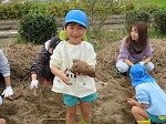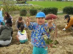 「大きいね」「13個ほれたよ」「ちび芋ちゃんもあった」友達と見せ合いっこして会話も弾みました。カエルや幼虫がいっぱい土の中から出てきて、虫との触れ合いも楽しみました。