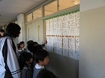 1月20日 田辺東小学校に書初め展を見せてもらいに行きました。普段からなかよしアーチでつながっていてよく小学校に行かせていただいているので、子どもたちは小学校をとても身近に感じています。「お兄ちゃん上手やなー」「むずかしい字やなー。なんて書いてあるの?」真剣に見学しました。