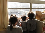 お兄ちゃんやお姉ちゃんも「幼稚園から見にきてくれたの?ありがとう!」「かわいい♡」と声をかけてくれたり、先生方も「教室入って見ていって!」「どうぞどうぞ!」と中に入れてもらったりしました。「ここから(教室)幼稚園が見えるよ」と教えてもらいました。本当に暖かいかかわりや気持ちがうれしいです。