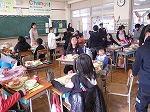 いつも、小学校の給食室から美味しそうなにおいが幼稚園まで漂ってきます。「ええにおいやなぁ」といつも言っていました。 昨日は来年1年生になる子ども達が小学校に行って、待ちに待った給食を頂きました。 5年生のお兄さんやお姉さんに囲まれるようにして、ドキドキしながらスタートしましたが、小学生から話しかけられたり、クイズやしりとりをして遊んでもらったりしながら過ごすうちに緊張もほぐれ、楽しい経験になったようです。 幼稚園では食の進まない子も、野菜が苦手な子も、楽しく頂くことができ満足して帰ってきました。 食欲と意欲はつながっていると言います。苦手と思う物も味を変えたり、形を変えたりしながら少しずつでも口に運ぶことができるようになることが、「なんでもやってみよう、」「試してみよう」とする気持ちにつながるのでしょうね。 「食べないから」「いやがるから」といって食卓から外してしまわず、挑戦するチャンスを作ってあげましょう。 ますます、小学校の入学が楽しみになった年長児でした。