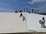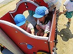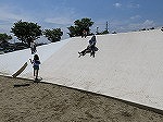 大きなすべり台!みんなですべりました。「キャー楽しい!」「一緒にもう一回すべろう!」「今度は先生も!」と歓声があがっていました。