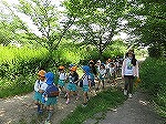 5月17日、年長ゆり組と年中すみれ組は防賀川公園に遠足に行きました。