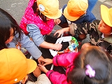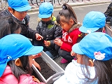 なりながらチュウリップの球根植え。一人一人大切に植え、名札もつけてもらって