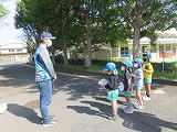 3つ目のポイントは、「先生に運動場まで案内してもらおう!」です。「あそこに先生がいるよ!」2年生の担任の先生が待ってくださっていました。