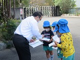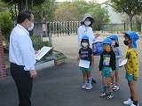 ちょっぴり緊張しながら、校長先生にごあいさつ。いろいろとお話や質問もしてくださり、みんな安心して自分の名前を言うことができました。
