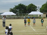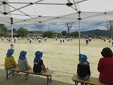さあ、いよいよ運動場へ!はじめのあいさつです。