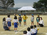 おわりのあいさつ。「今日はどうでしたか?」「楽しかったです!」1・2年生からプレゼントもいただきました。