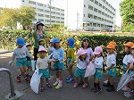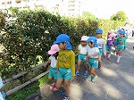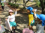 グランドゴルフをしておられる地域の方が声をかけてくださいました。「たくさんとれた?」「みせてみせて」とビニール袋を見てくださいました。「ここまっすぐ行った所に大きなどんぐりがあるよ」と教えてもらい田辺高校横の遊歩道まで歩いていきました。「きーぃつけて行きや」と見送ってもらいました。地域の方の優しさにいつも感謝です。