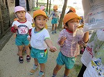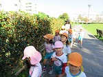 広場に到着!「うわーいっぱいあるー」「先生、みてみて!」♪どんぐりころころどんぶりこ~と歌いながら楽しく拾いました。気づけば大合唱(^^♪