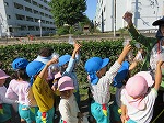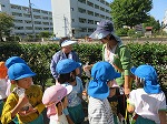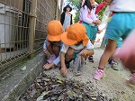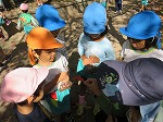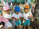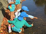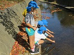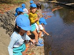川にきれいなどんぐりが落ちていることを発見!年長さんが代表して取りに行きました。川にはメダカやハグロトンボ、タニシなどたくさんいて、自然に親しむことができました。これからもたくさん秋の自然に触れ、遊びに取り入れていきたいと思います。帰って早速、どんぐりを図鑑で調べていましたよ。芸術の秋!どんな遊び&作品に変身するのか楽しみです。