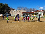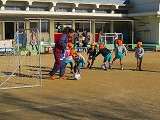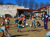 暖かい日差しに寒さもゆるみ、絶好のサッカー日より。今日は4、5歳児が体験。