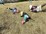 この広場は電車が見える子ども達の大好きな場所♡なかなか見ることのできない「しまかぜ」が通って大喜びでした。何も遊具はありませんが、自然の中で思い切り遊ぶことが楽しそうでした。自然を取り入れ、友達と工夫して遊んでいました。子どもは遊びの達人ですね。