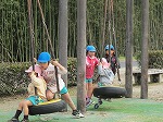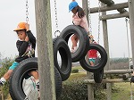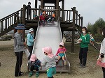 公園に着きました。滑り台、タイヤ乗り、土手滑り、いっぱい