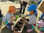 年長ゆり組が年中すみれ組に丁寧に優しく教えてくれました。このイチゴはゆり組が1年生になり、すみれ組が年長になった時に一緒にイチゴ摘みをします。それまで一緒に大切に育てることを約束し、来春を楽しみに話をしました。おいしいイチゴになるといいですね。楽しみです。