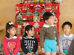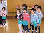 2月27日 こどもお別れ会をしました。今日は年中すみれ組が準備から司会、進行などすべて進めてくれました。初めての司会にドキドキしながら大きな声で話すことができました。
