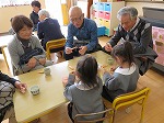 おじいちゃん・おばあちゃんと一緒に昔遊びコーナー遊びをしました。折り紙、コマ、紙鉄砲、あやとり…おじいちゃん・おばあちゃんと触れ合ってたくさん教えてもらいながら遊びました。