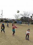 年中すみれ組は、ジャンケンゲームの後、ボールを使って体のいろんなところを使って遊びました。「背中にボール乗ったよ」「みてみて!高くボール投げられた!」ひとつできるようになったらコーチとハイタッチ!認めてもらい自信に満ちた顔になりました。