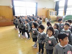 1月9日 3学期始業式を行いました。「おじいちゃんの家行った」「サンタさん来たよ」「お年玉もらったよ」などなど冬休みの楽しいお話を聞かせてくれました。ご家庭で様々な経験をされ、ひとまわり成長したように感じます。