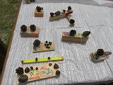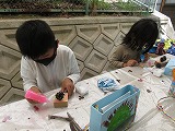 みんなでお弁当を食べた後は、山の探検で拾った自然物で工作をしました。