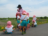 入園後、初めての遠足。ともだちや先生とお散歩してから公園へ。タンポポ