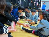 クリスマス会に駆けつけてくれた6年生のみんな、組み立て、波のボディパーカッション、