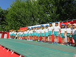 ♪園歌 ♪とんぼのめがね をみんなで歌いました。年少うさぎ組は♪ぽんぽこたぬき 年中すみれ組は♪虫の声 年長ゆり組は♪ともだちさんか の歌を発表しました。最後は明日敬老の日であることから全員で♪おじいちゃんのおとし を歌いました。