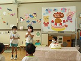 年長さんにお祝いに来てもらいみんなでお祝いをしました。