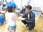 10月6日 田辺東小学校1年生に年長ゆり組が「うんどうかいにきてください」と手作りの手紙を持っていきました。