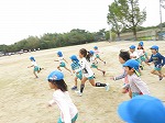 招待状を渡したあとは、広い広い校庭で思い切り走りました。「もっと走りたい!」と往復走って、すがすがしい気持ちで幼稚園に戻りました。