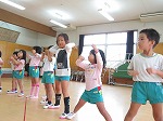運動会でするリズム表現をみてもらいました。最後、♪やってみようの曲に合わせてヒップホップダンスでするので、かっこよくキメルにはどうしたらいいか教えてもらいました。