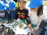 「これが玉露と碾茶だよ」と2種類のお茶を見せてもらいました。「でも同じ葉っぱからできているよ」と教えてもらいビックリしました。「玉露は細くて針みたいだね」「碾茶は四角い!」「碾茶は抹茶のにおいがする!」と新しい発見がありました。