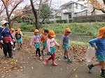11月16日 全園児そろってお散歩に行きました。お散歩が大好きな子どもたち!「今日はどこに行くの?」「今日は素敵なかばんを持ってどんぐりを拾いに行くよ」「やったー」大喜びの子どもたちでした。お気に入りの散歩道♪足取りも軽やかです!