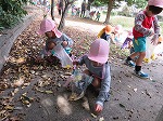 「あった!」「大きいどんぐり見つけた」「先生!みてー」「ここいっぱいあるよ」歓声が響いていました。