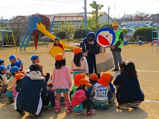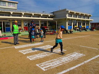 田辺警察交通課のご協力により親子交通教室を開催。信号の事、道路を歩く時の