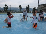 今年も、お隣の田辺東小学校のプールをお借りして、プール遊びをしました。