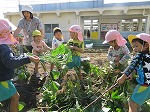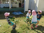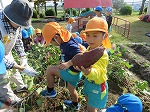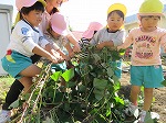 11月1日 幼稚園の畑に植え、育ててきたお芋を掘りました。