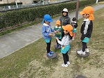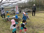 3月1日 早いもので今日から3月です。ぽかぽかとっても暖かく、お母さん方が環境整備で幼稚園をキレイにしてくださっている間にみんなでお散歩に行きました。田んぼ道を歩いて堤防上の広場まで行きました。坂道をコロコロ転がったり、鬼ごっこをしたり、「あっ!今電車通った!」と電車を見たりしました。
