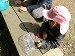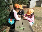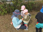 ドングリやさざんかの花を見つけ、おままごともはじまりました。「お花のおいしいサンドイッチ!」「ケーキどうぞ」とたのしんでいました。