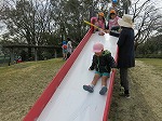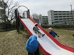 お天気が良くまだまだ遊びたい子どもたち。ずっと「また行きたい!」と言っていた幼稚園前の西神屋公園に移動して思いきり遊びました。大きなすべり台をすべったり…