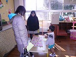 明けましておめでとうございます。 幼稚園にもかわいい子ども達が戻ってきました。 8日に新年会をしました。今年は、幼稚園と家庭と地域がひとつとなって子どもを見守り育てる事を願い、日頃より関わりのある地域の自治会、老人会の方々に参加していただきました。 お手玉やこま回し、福笑いに羽根突き、それと培良中学校の生徒さんから頂いた手作りおもちゃのコーナーを親子で回り、地域の方や職員と楽しいひとときを過ごしました。 終わりには、みやび会(老人会)さんに作っていただいたおぜんざいをみんなで頂きました。 これからも、幅広い年代の方達どうしが気軽に話せる関係の中で、また、子ども達が包み込まれているような温かい雰囲気の中で成長してくれることを願っています。 今年もよろしくお願いします。  |