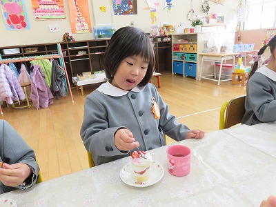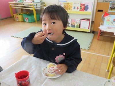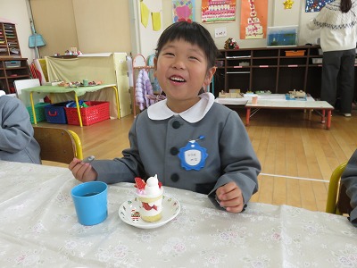 クリスマス会が終わると、みんなでおいしくケーキをいただきました。