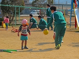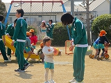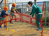 感謝。なつかしげに色々な遊具を試している中学生にほほえましく。幼中交流の回数を