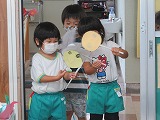 田辺東幼稚園の 50さいをお祝いしよう! 田辺東幼稚園は、50周年を迎えました。 10月の運動会でお祝いをしよう!とみんなで準備中です。 きのうは、寝相アートで「50」を作りました。 芝生の上に毛糸で50を作り、ジャングルジムの上からきれいに撮れそうな場所を定めます。 「こうやって寝るの?」→ ←「いい感じ!」 みんなで寝てみよう!(作成途中の写真です。カメラマンさんが撮った写真をお楽しみに!)  セレモニーでは3・4・5歳児で一休音頭を踊ります。メインで踊るゆり組さんは、撮った動画を見て動きの研究中。「もっと伸ばしたほうがかっこいいかな?」  50周年ではないけれど、今日も楽しいことを考えて見せにきてくれたうさぎ組さん。「でた でた つきが~」と歌ってくれています。  お月見が楽しみですね。 |