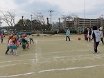 「みんなでドッチボールしよう!」「大人対子どもでしたい!」とみんなを誘い、ドッチボール大会をしました。「絶対負けないぞ!」「先生つよーい」